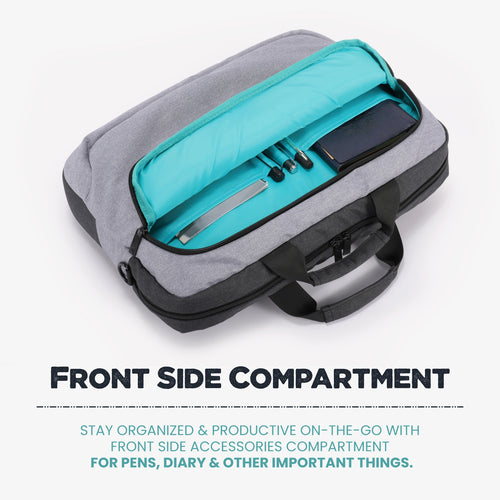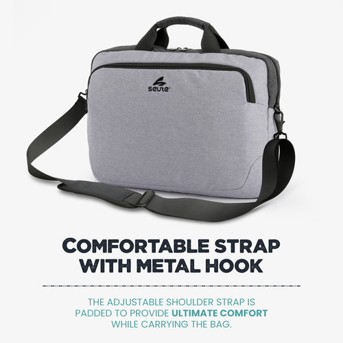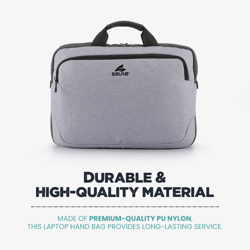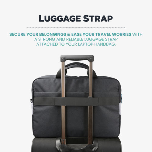 The laptop handbag is designed to fit laptops up to 15.6 inches in size.