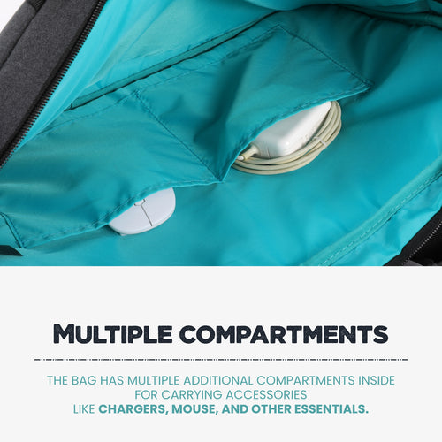 Yes, the handbag has multiple compartments and pockets to hold accessories such as chargers, cables, and mice.